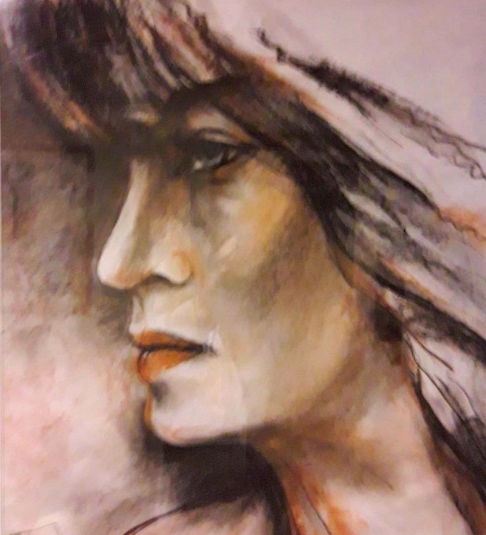 Dibuje a Dorys sobre papel de almacenero, con pasteles, en forma rapida , ella posando ,